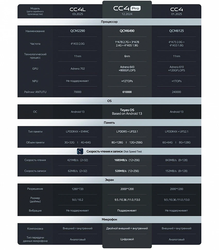 Компания Teyes представила новую линейку магнитол Teyes. Новинки CC4L, CC4 Pro и CC4 получили новую операционную систему Android 13, топовые версии CC4 Pro и CC4 обзавелись поддержкой 2К разрешения экрана. CC4 Pro и CC4 получили новую ускоренную оперативную и постоянную память. CC4 Pro обзавелась процессором QCM6490 (6 нм) и графикой Adreno 643, в то время как модель CC4 получила процессор QCM6125 (11 нм) и графический процессор Adreno 610.